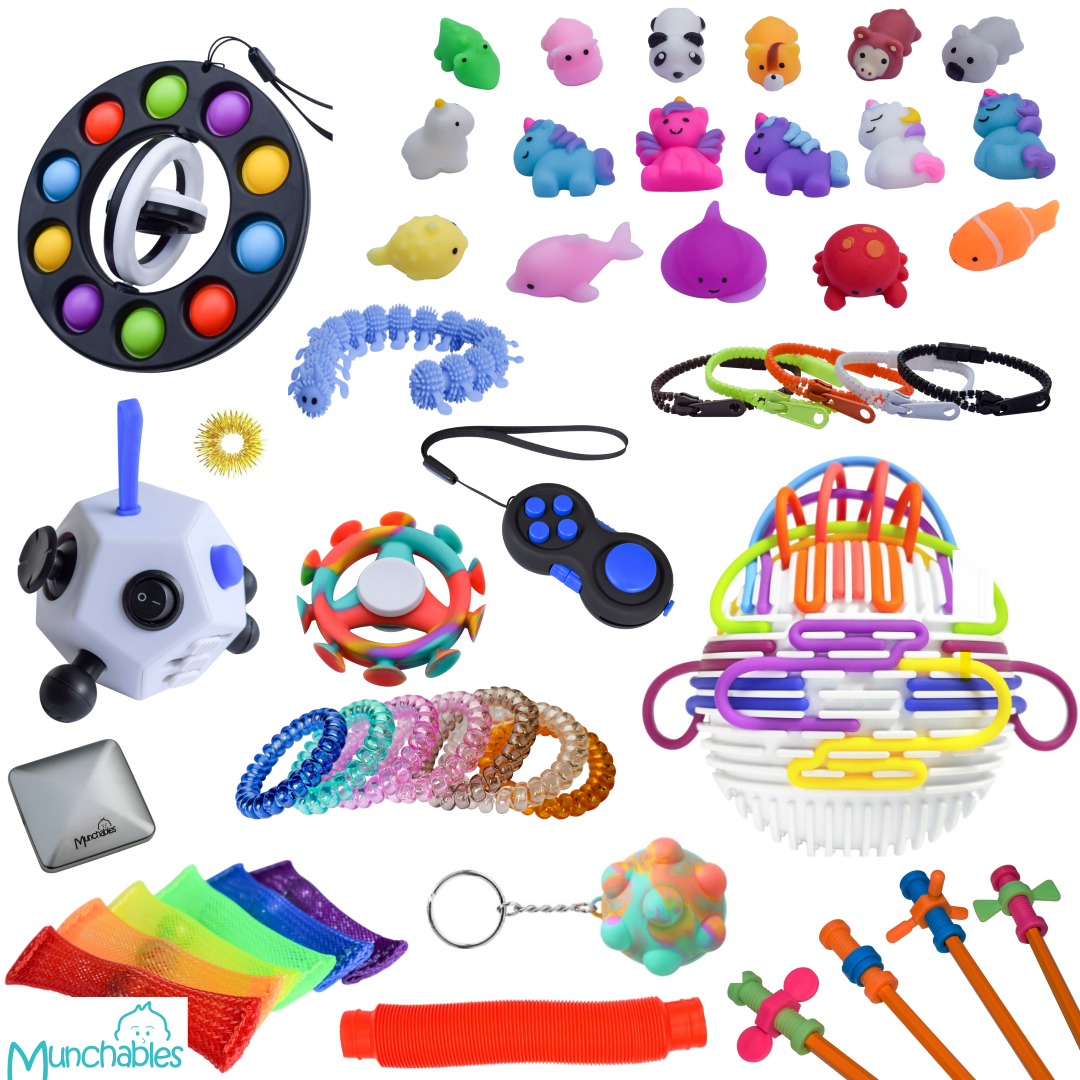 The Munchables Ultimate Fidget Pack is the ideal way to explore a wide range of sensory toys. This pack includes 38 stretchy, twisty, flippy and poppable sensory stims that are sure to engage your tactile senses.